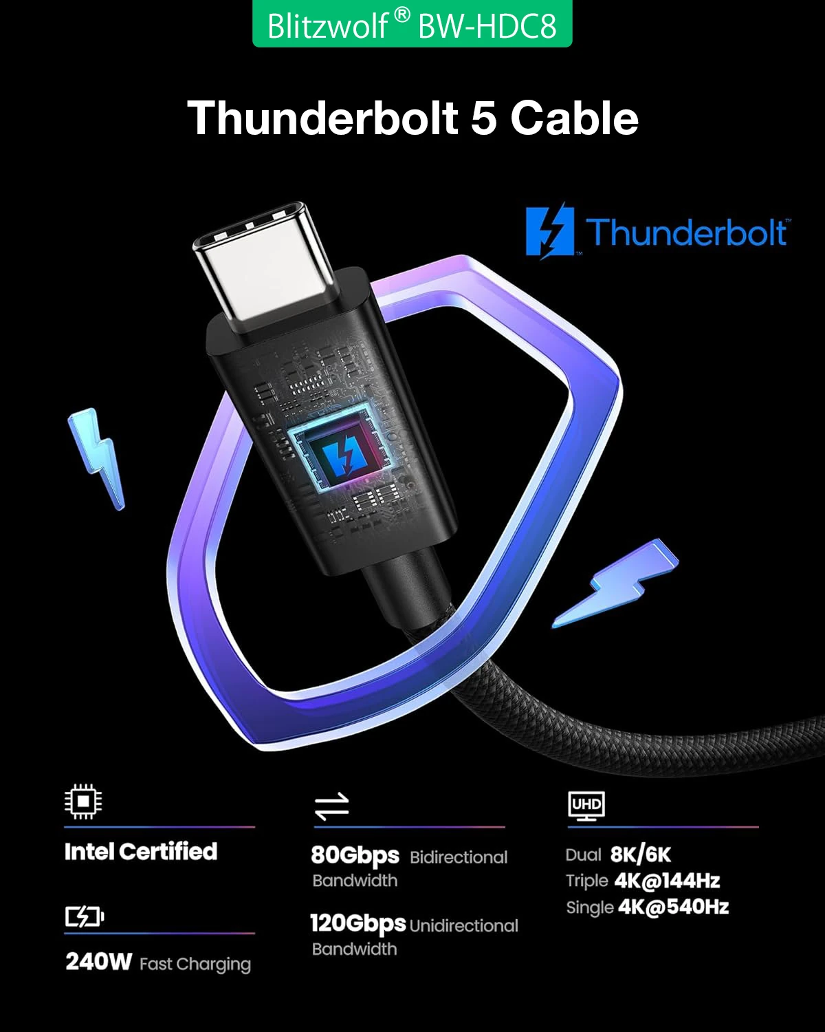 BlitzWolf® BW-HCD8: The Cable of the Future with Thunderbolt 5 Technology