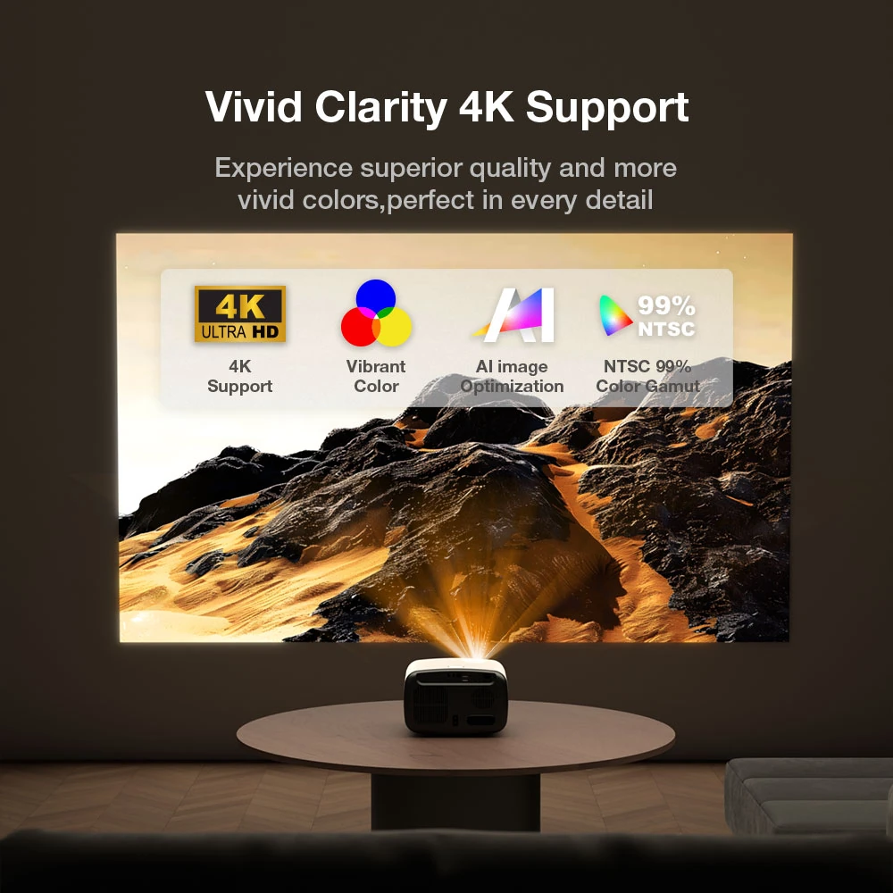 The projector boasts 99% original color fidelity, 1920*1080 resolution projection, which provides crystal clear images and vivid colors. The high resolution ensures that you can enjoy every detail of your favorite movies and TV shows and make you feel like you are right in the middle of the action. This feature is a must-have for anyone who appreciates high-quality visual experience.