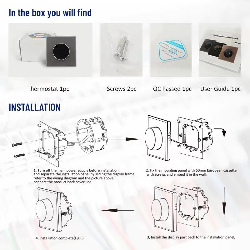 The smart thermostat has a stylish, sensitive LCD touch screen, scratch-resistant, easy to clean.